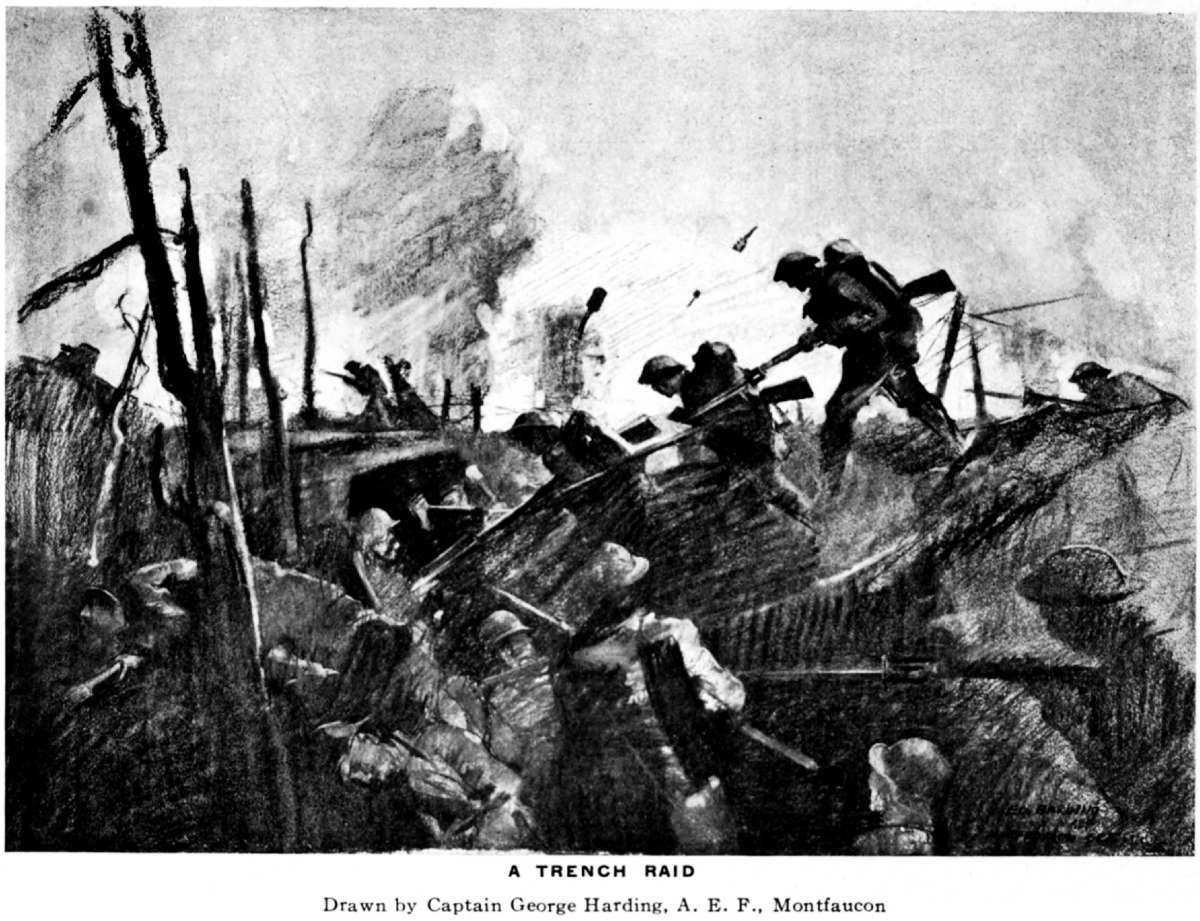 | A TRENCH RAID Drawn by Captain George Harding, A. E. F., Montfaucon |