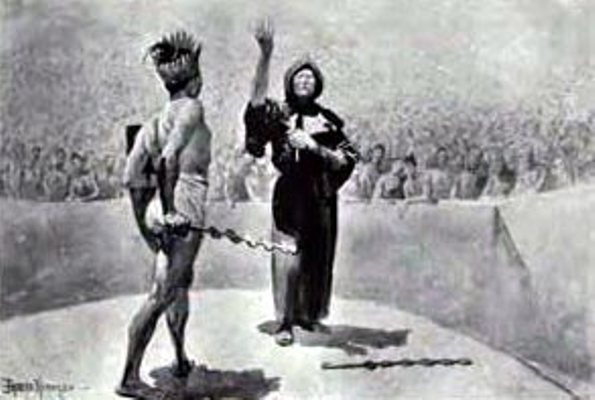 Don Rafael spoke with a depth of feeling and a reverence of tone that gave his strong words still greater strength and deeper meaning. After that moment's pause he resumed: "But that which is of most interest to you, señor, is the knowledge that Fray Antonio has gained of our native Indians during his ministrations among them. It is the dearest wish of his heart to carry to these heathen souls the saving grace of Christianity, and for the accomplishment of this good purpose he makes many journeys into the mountains; ministering in the chapels which his zeal has founded in the Indian towns, and striving earnestly by his preaching of God's word to bring these far-wandered sheep into the Christian fold. Very often his life has been in most imminent peril, for the idolatrous priests of the mountain tribes hate him with a most bitter hatred because of the inroads which his mild creed is making upon the cruel creed which they uphold. Yet is he careless of the danger to which he exposes himself; and there be those who believe, such is the temerity with which he manifests his zeal, that he rather seeks than shuns a martyr's crown."
