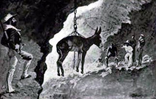 "It won't do for us both together t' go down there," Young said, as he rose from his seat and we peered into the dark cavity. "Mullins might take 't into his fool head t' shut himself up while we was down there, an' that ud mean cold weather for Rayburn an' Pablo. I'll just jump down them steps an' prospect a little, while you look after him t' see that he keeps steady;" and with these words down he went into the hole.