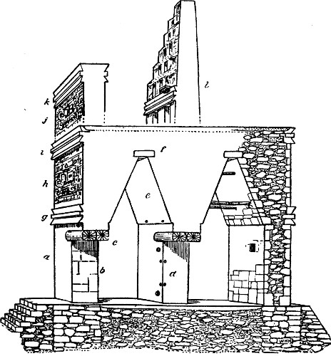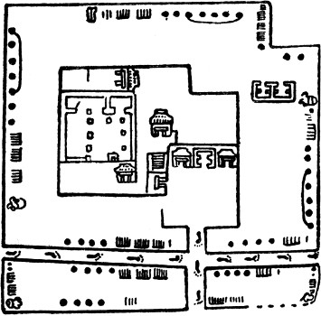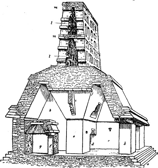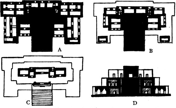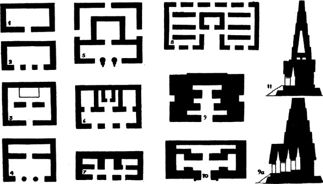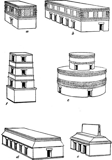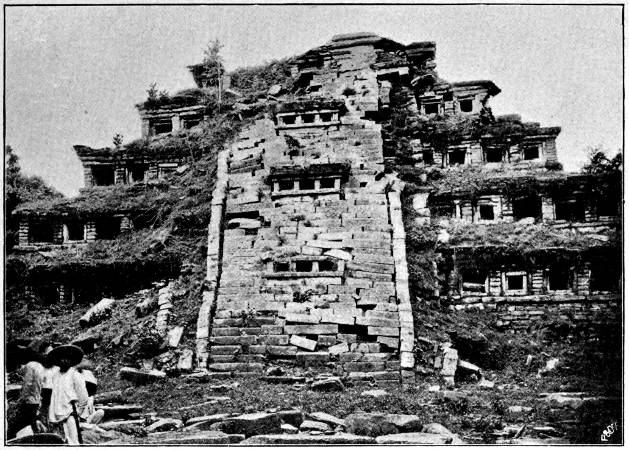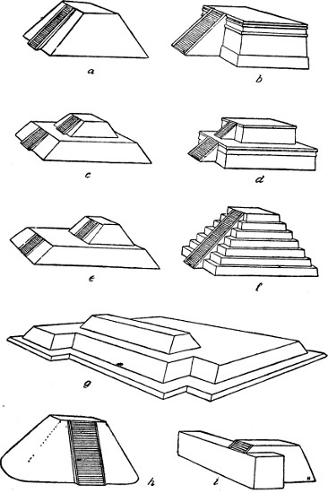 [9] The corners of the Castillo at Chichen Itza also appear to have been slightly rounded and not square, as shown in Fig. 73, f; p. 321.