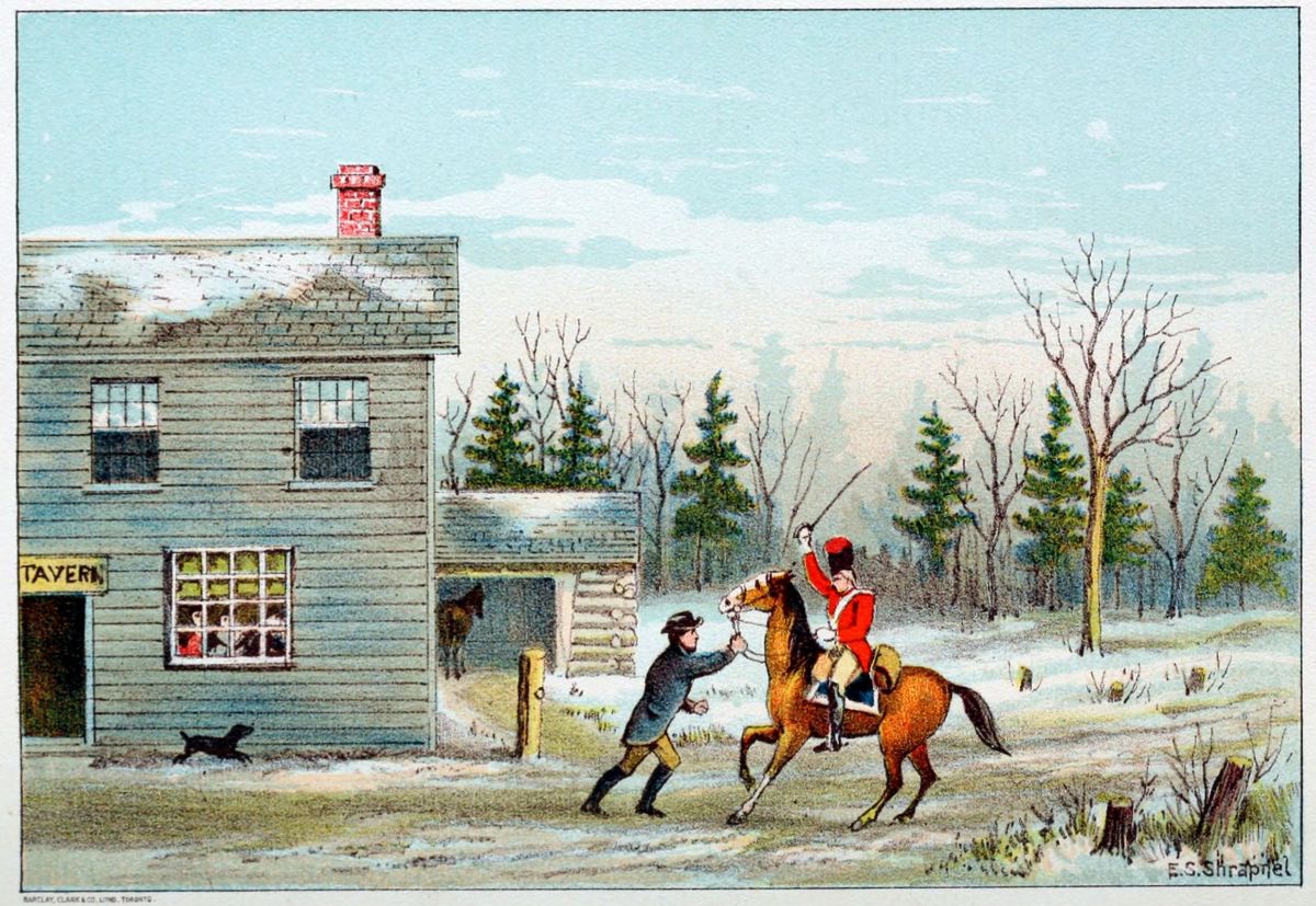 Indeed, so common were cases of delirium tremens in those days that I might go on and multiply instances—tell, indeed, of a man climbing up into a hayloft in the dark, catching the teamster who came for hay, frightening him into a fit of sickness, and dying there before morning, curled up on the hay like a dog. Again, I might instance the case of another unfortunate, who started and ran from the “Corners,” then constituting Oshawa, directly in the course of the mill-ponds, with the whole village chasing him, making past the ponds and into the woods a mile and a half away, before being caught—like a man running amuck. But perhaps I have said enough on so unpleasant a feature of early life in Ontario.