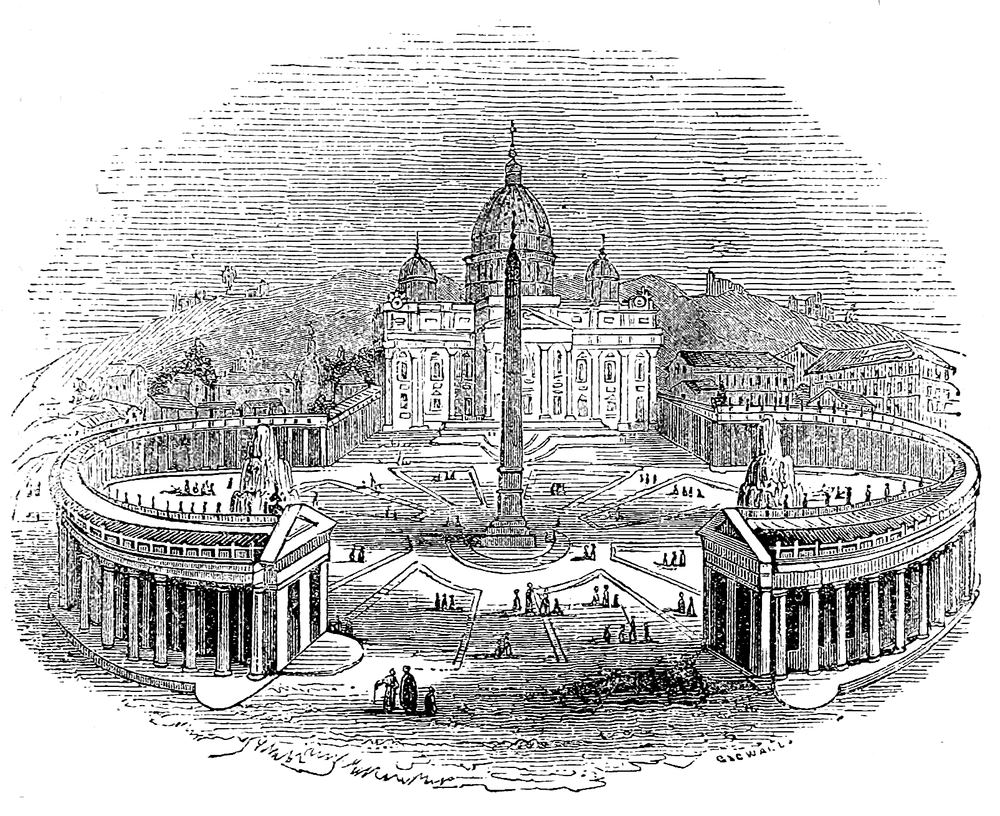 Let us now glance at the enterprise of erecting a more durable monument. Russia, proud of her Czar, the celebrated Peter the Great, wished to erect a monument to his memory. Catherine the Second was the monarch who had the direction of the work, and her choice for an artist fell upon M. Falconet, who, in his conception of an equestrian statue, resolved that the subordinate parts should bear an equal impress of genius. “The pedestals in general use,” he observed, “had no distinctive feature, and adapt themselves equally well to any subject. Being of so universal application they suggest no new or elevated thoughts to the beholder.” Falconet wished to make the Czar appear as the father and legislator of his people—great and extraordinary in everything—undertaking and completing that which others were unable to imagine. To carry out this conception a precipitous rock was fixed on for the pedestal, on which the statue should appear with characteristics distinguishing it from those erected to other sovereigns.