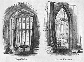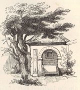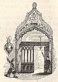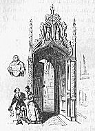 [188b] Since this sketch was made, the gateway, with the coat of arms over it, has been removed, and a battlemented and Gothic entrance, more in accordance, perhaps, with the architecture of both church and mansion, has been erected in its stead.