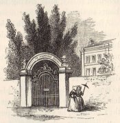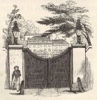 [121] The gates here represented have now given place to a light iron railing, and the posts have been surmounted by balls.