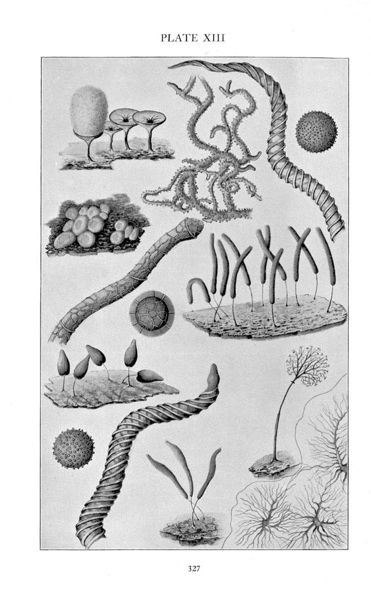 Fries, in his Systema Mycologicum, 1829, summed up in most wonderful way the work of all his predecessors and the mycologic science of his time. In reading Fries the modern student hardly knows which most to admire, the author's far-reaching, patient research, the singular acumen of his taxonomic instinct, the graceful exactness of the Latin in which his conclusions are expressed, or the delicate courtesy with which he touches the work even the most primitive, of those his predecessors or contemporaries. Nevertheless in our particular group even the determinations of Fries are not conclusive. He himself often confesses as much. The microscopic technique of that day did not yield the data needful for minute comparison among these most delicate forms.