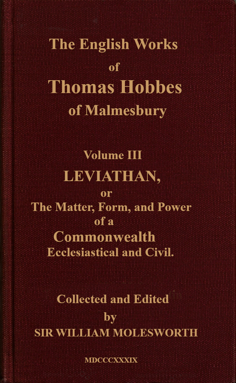 And thus I have brought to an end my Discourse of Civil and Ecclesiastical Government, occasioned by the disorders of the present time, without partiality, without application, and without other design than to set before men’s eyes the mutual relation between protection and obedience; of which the condition of human nature, and the laws divine, both natural and positive, require an inviolable observation. And though in the revolution of 714states, there can be no very good constellation for truths of this nature to be born under, (as having an angry aspect from the dissolvers of an old government, and seeing but the backs of them that erect a new), yet I cannot think it will be condemned at this time, either by the public judge of doctrine, or by any that desires the continuance of public peace. And in this hope I return to my interrupted speculation of bodies natural; wherein, if God give me health to finish it, I hope the novelty will as much please, as in the doctrine of this artificial body it useth to offend. For such truth, as opposeth no man’s profit, nor pleasure, is to all men welcome.