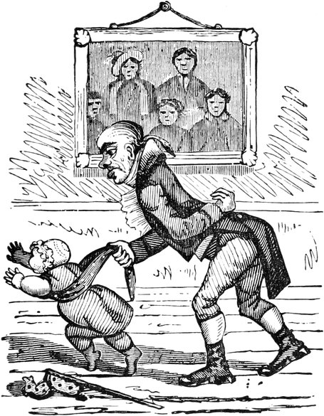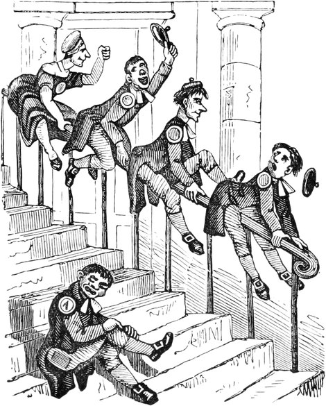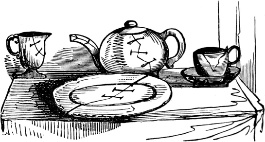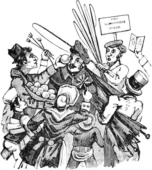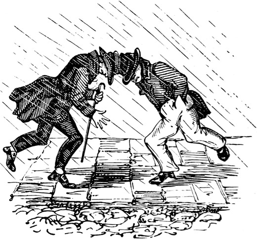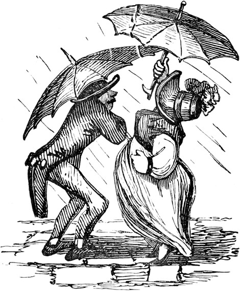 Such, your Lordship, is our present melancholy state. I have not dwelt, as I might do, on expenses, such as the dresses that are spoiled in the coal-cellar; the paying months’ wages instead of warnings; nor the trays upon trays of glass and china that are chucked down, as the way the servants always empty their hands when making their escapes from my husband’s false alarms. Sometimes it’s a chair falls overhead; or the wind slams the back door; or a smell of burnt wood from the kitchen; or the ironing-blanket; or fat catched; or fall of soot; or a candle-snuff; or a smoky coal; or, as I have known before now, only the smell of the drains; with a hundred other little things that will spring up in families, take what care you will. I ought not to forget thunder-storms, which are another source of trouble; for, besides seeing a dozen fanciful flashes for one real one, it is the misfortune of Mr. D. not to put faith in conductors, or, to use his own words, “in Franklin, philosophy, and fiddlesticks,—and a birch rod as likely to frighten away lightning as an iron one.” In the meantime, through the constant frights and flurries, I begin to find my own nerves infected by bad example, and getting into startlish habits; and my daughter Lucy, who was always delicate, seems actually going into a poor low way. Agreeable society might do much to enliven our spirits; but my husband is become very shy of visitors, ever since Captain Gower was so inconsiderate as to walk in, one foggy night, with a lighted cigar in his mouth. In fact he quite sets his face against the male sex: for, if they do not smoke[Pg 450] cigars, he says, and carry lucifers, they strut on their iron heels and flourish about with iron-pointed walking-sticks and umbrellas. All which, Your Lordship, is extremely hard on myself and daughters, who, like all young people, are fond of a little gaiety; but the very utmost they are allowed, is a single quadrille party at Christmas, and then they are all obliged to dance in list shoes.