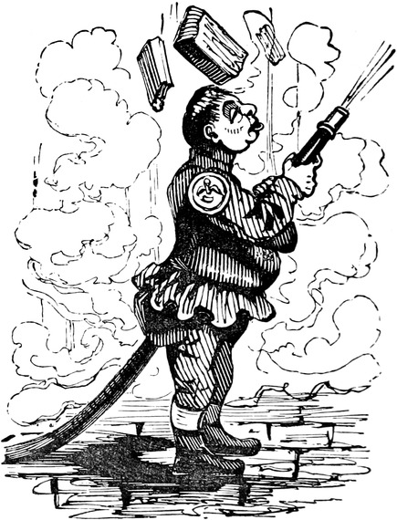 “Good God!” exclaimed my left-hand companion on the roof. “Was not the poor fellow hurt?”