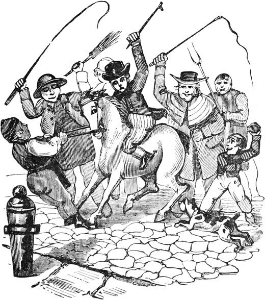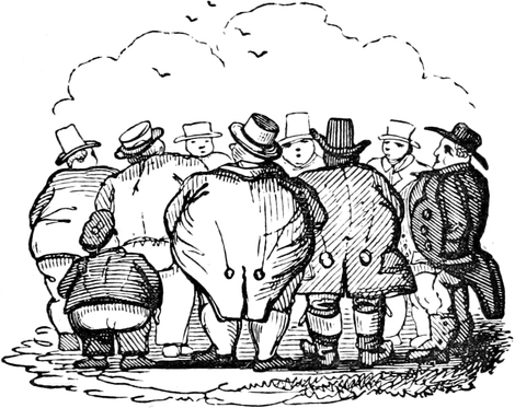 Ned instantly pulled up, with his team upon their haunches—we all alighted, and in a moment the sixteen the Rocket was licensed to carry were at the fatal spot. In the midst of the circle lay, what we considered a bundle of last linen just come home from the mangle.