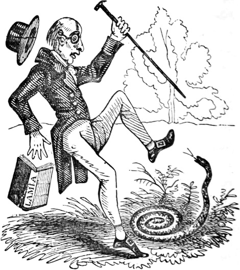 As I am but an occasional reader in the temporary indulgence of intellectual relaxation, I have but recently become[Pg 12] cognizant of the metropolitan publication of Mr. Murray’s Mr. Croker’s Mr. Boswell’s Dr. Johnson: a circumstance the more to be deprecated, for if I had been simultaneously aware of that amalgamation of miscellaneous memoranda I could have contributed a personal quota of characteristic colloquial anecdotes to the biographical reminiscences of the multitudinous lexicographer, which although founded on the basis of indubitable veracity, has never transpired among the multifarious effusions of that stupendous complication of mechanical ingenuity, which, according to the technicalities in usage in our modern nomenclature, has obtained the universal cognomen of the press. Expediency imperiously dictates that the nominal identity of the hereditary kinsman, from whom I derive my authoritative responsibility, shall be inviolable and umbrageously obscured; but in future variorum editions his voluntary addenda to the already inestimable concatenation of circumstantial particularisation might typographically be discriminated from the literary accumulations of the indefatigable Boswell and the vivacious Piozzi, by the significant classification of Boz, Poz, and Coz.