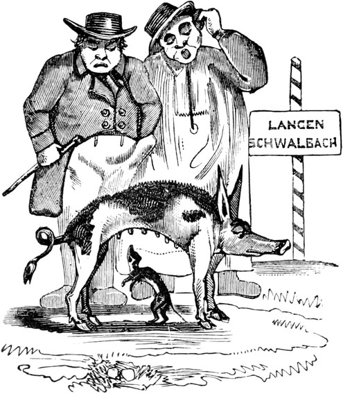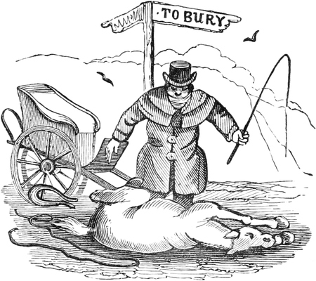 And now, Uncle, I have explained to you all about Animal Magnetism; and, says you, there are many things that come by names they have no right to, without going to Scotland, where you know they call a pitcher a pig. So it is very lucky on the whole, that you wrote to me, instead of posting up to London on a fool’s errand,—as did a respectable Lancashire grazing gentleman, the other day, in the newspapers, who was hoaxed all the way up to town, by a false notion that Animal Magnifying, as he called it, was some new, cheap, and quick way of fatting cattle. It will maybe turn out quite as deceitful an article as to its other qualities; and in that case, if I had the luck to be a magistrate, I would cold pig the sleeping partners with Cold Bath Fields and send off the active ones, to take a walk at a cart’s tail, with something they could feel, if they could not read it, on their backs and shoulders. That’s how I would measure out the law, if I was Lord Chief Justice. In which sentiments I conclude, with love to yourself, and all my cousins, if I have any living—with my best condolences for my poor late Aunt. As to business, I have only broken twice as yet; which is doing pretty well, considering the hard times and the state of trade. Wishing you the like prosperity, with health, and every other blessing, I remain, dear Uncle,