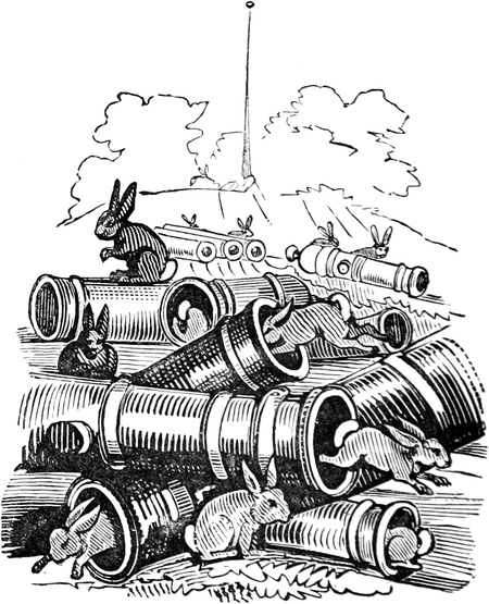 “Shell be hanged!” said the sufferer, in a tone that made us all jump a yard backward. “Stick me up agin the milestun—there, easy does it—that’s comfortable—and now tell me, and no nonsense,—be I flat?”