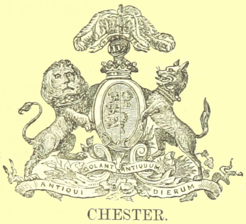 From this period to the Conquest, Chester has nothing of a tale to tell; but on the accession of William the Conqueror, he created his nephew Hugh Lupus, Earl of Chester, at the same time investing him with supreme authority throughout the county and city, so that he held as absolute a regal sway within those limits as the king himself had in his dominions. For one hundred and sixty years did Hugh Lupus and his successors, the seven Norman Earls of Chester, exercise their petty sovereignty over the city and county, until the death of Earl John Scot, in 1237, when Henry III. took the earldom, with all the powers annexed to it, into his own hands; and from that period to the present it has been held by the English Crown. The title of Earl of Chester was conferred by Henry upon his eldest son, afterwards Edward I. It has ever since been vested in the reigning monarch’s eldest son, and is now enjoyed by his Royal Highness, Albert, Prince of Wales, the hopeful heir of our beloved Queen.