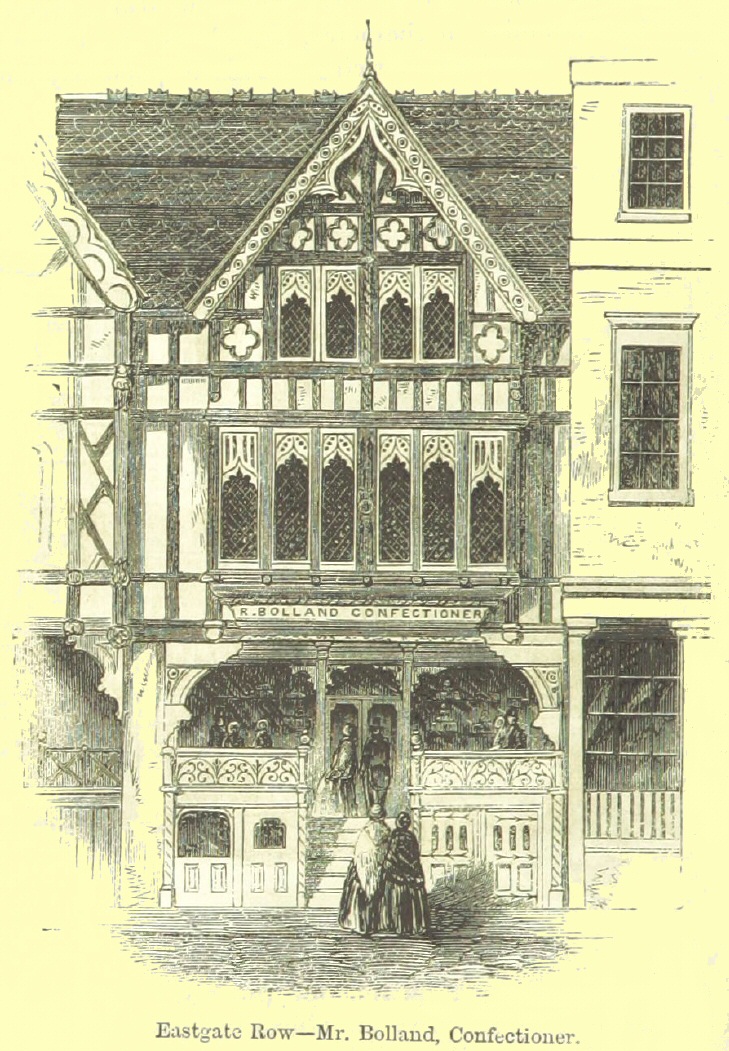 “Rare old city of Chester!” writes Albert Smith in his “Struggles and Adventures of Christopher Tadpole,”—“Rare old city of Chester! Even in these days of rocket-like travelling, a man might fly all over Great Britain and Ireland, with an extra ‘day ticket’ for Berwick-upon-Tweed, before he saw anything half so fine as the mouldering old walls and towers of that venerable city, or looked upon anything half so fair as the prospect of vale and mountain, wooded headland, and spire-pointed plain, that surrounds it.” Well said, friend Albert;—echoed, too, far and wide, by the thousands of visitors who are annually led to seek entertainment within its Walls!