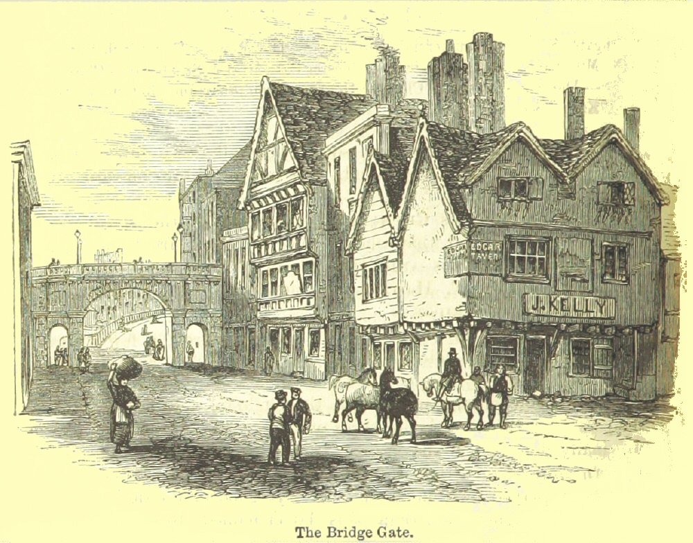 The Walls, continued.—The Roodeye.—Chester Races.—The Castle of the Olden Time, and the Castle of To-day.—The Grosvenor Bridge.—Cæsar’s Tower.—Handbridge, and Edgar’s Cave.—Bridge Gate.—Dee Mills and Bridge.—Causeway.—Queen’s Park, and Wishing Steps.—The Newgate and its Traditions.—The East Gate |