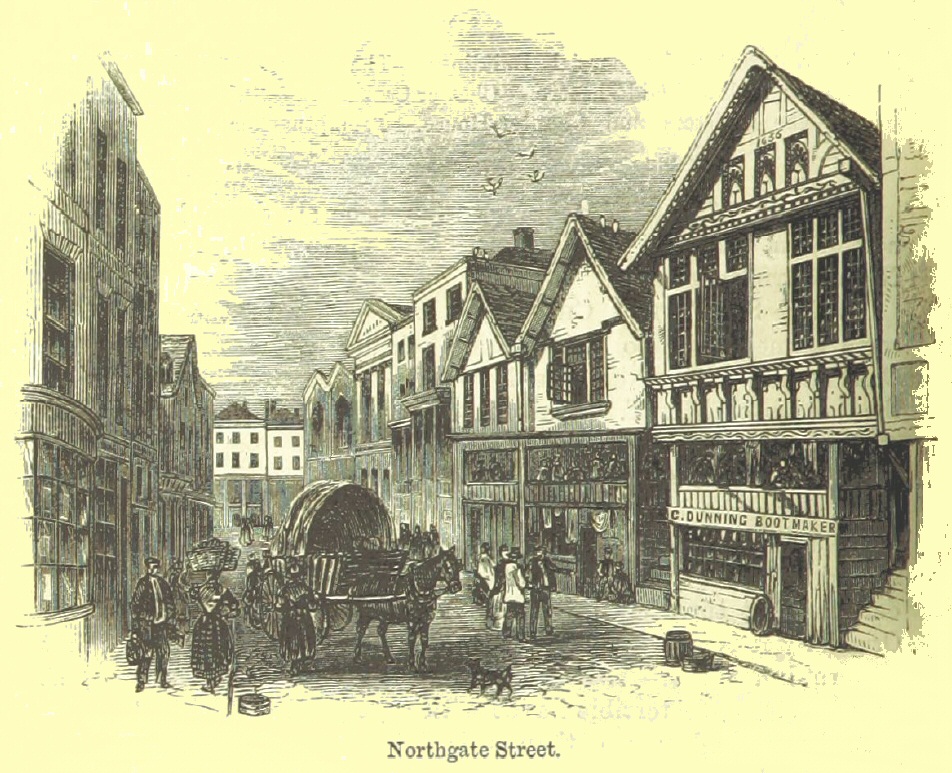 North Gate Street.—Commercial Buildings.—The Rows.—The Exchange.—Music Hall and Old Theatre.—Chester Cathedral.—St. Oswald’s Church.—The Cloisters, and Chapter House.—Promptuarium.—Refectory and King’s School |