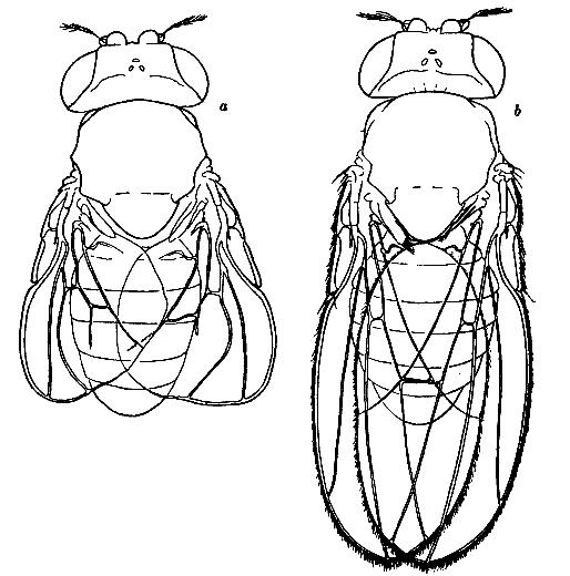 [3] The first dark body-color mutation "black" (see plate II, figs. 7, 8) had appeared much earlier (Morgan 1911b, 1912c). It is an autosomal character, a member of the second group of linked gens. Still another dark mutant, "ebony," had also appeared, which was found to be a member of the third group of gens.