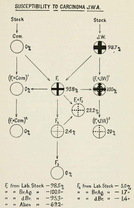 Fig. 13. Diagram showing inheritance of immunity to cancer. (From Tyzzer and Little.)