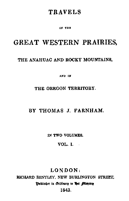 Part I of Farnham's Travels in the Great Western Prairies, etc., May 21-October 16, 1839