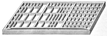 Cabinets of various kinds and prices. Stands, double or single, or made in different styles to order, of walnut or poplar. Cases of all kinds. Imposing Stones of regular sizes constantly on hand; special sizes and styles got up to order. Galleys of all kinds, either wood or brass. Stereotype Blocks, with or without rule borders. Chases of wrought or cast iron. Composing-Sticks of all kinds, large and small. Racks for cases. Ink Stones. Card, Paper, Lead and Rule Cutters. Labour-Saving Wood Rule. Labour-Saving Wood Furniture. Labour-Saving Curvatures. Furniture, Quoins, Mallets; Shooting-Sticks of brass, iron or dogwood; Planers, Bodkins, Ley and Washing Brushes, &c.