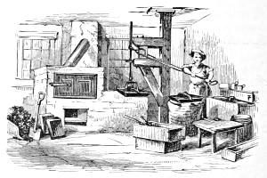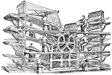 On the decease of these two brothers, Robert Hoe, in 1823, succeeded to the business, which was then in its infancy, giving employment to only a handful of men, and being conducted in the middle of the block bounded by Maiden Lane, Pine, William, and Pearl Streets, in some old buildings to which access was gained by an alley running from Maiden Lane to Pine Street. Here the business, under the style of Robert Hoe & Co., grew rapidly; but the extension of Cedar Street made necessary its removal to the present location in Gold Street. About this time, the flat-bed cylinder press, for newspaper printing, was introduced into England; and Mr. Hoe sent an intelligent mechanic there to examine it, and it was soon brought into use here, with valuable improvements. In 1832, Mr. Hoe’s failing health obliged him to relinquish the business to his eldest son, Richard M. Hoe, and Matthew Smith, son of his first partner. In the following year he died. Shortly after his decease, the firm erected extensive buildings in Broome Street, in the eastern part of the city, where the greater part of their manufacturing has since been carried on. They also commenced making cast-steel saws, which had previously been exclusively imported from England; and this branch has steadily increased in importance.