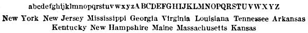 Some are of light and dainty face, others of medium, and others again of broad and massive character. The Lightface Series; the French-Face Series; the celebrated Scotch-Face Series, introduced by us many years ago; the Book Series; the Large-Face Series; the Classic Series; the News Series; the Broadface Series; the Modern Series; the Original Old Style Series; the Bradford Series; the Binny Series; the Ronaldson Series; the MacKellar Series, and all others introduced by us, are kept constantly on hand, in large and small founts.