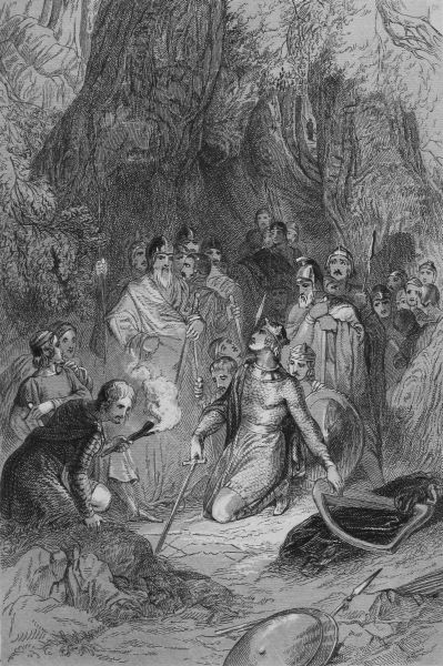 | Interior of an old British forest—Druidical sacrifice—Their treasures—Their mysterious rites and ceremonies—The power they possessed—Their belief in a future state—Their wild superstitions—An arch-Druid described—Their veneration for the mistletoe—Description of the Druids offering up sacrifice—The gloomy grandeur of their ancient groves—Contrast between the idols of the Druids and the heathen gods of the Romans | p. 17 |