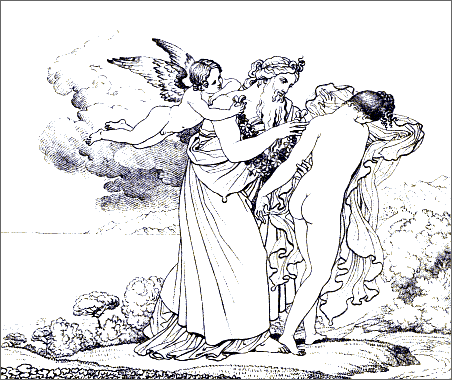 These designs originally accompanied a translation of the Odes of Anacreon, made by the painter himself and published shortly after his[Pg 10] death. Some small photographs of them on a greatly reduced scale appeared in 1864, in an exquisite little edition of the original Greek, from the press of Firmin Didot, at the almost prohibitive price of Two Pounds. The present reproductions are on a scale more proportionate with the originals, and constitute the first appearance of Girodet's designs in England, where, we feel assured, they will be appreciated as they deserve by all true lovers of classical art.