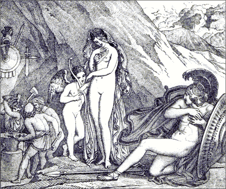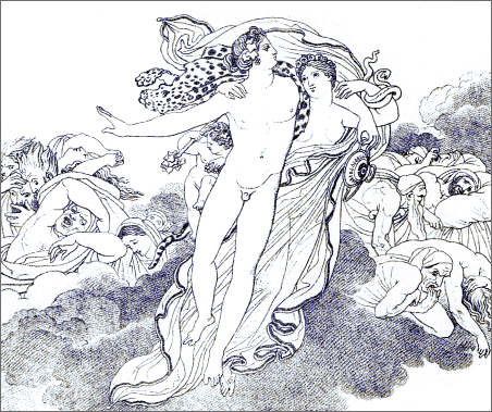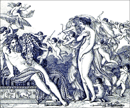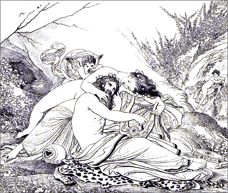 In that close wrestle of the genius that imitates with the genius that creates, Girodet alone came out from the trial successfully. He has shown himself the rival of Anacreon in grace, in abandon, in naïveté. He has succeeded in depicting his poet's theme with equal elegance and delicacy. Loving with a real love those old Greek songs, he has displayed them in living beauty before our eyes in fifty-four exquisite drawings. To attempt such a masterpiece required a poet's as well as a painter's skill; and Girodet was both a painter and a poet.