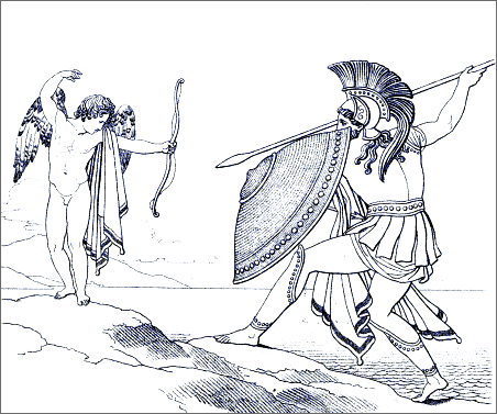 I knew him by his bow and dart;