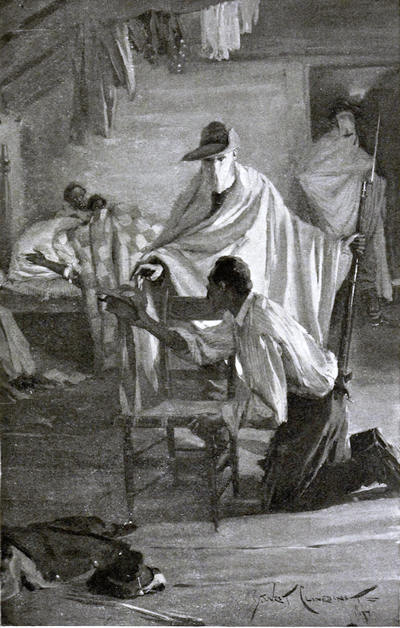 Steve was a tall, brown-haired young fellow, as straight as a sapling, and with broad shoulders; gray eyes that could smile or flash; teeth as white as snow, and a chin that Dr. Cary used to say he must have got from his mother. He was as supple as an eel. He could turn back-somersaults like a circus man, and as he was without fear, so he was without reverence. He would tease Miss Thomasia, and play practical jokes on Mr. Gray and Dr. Cary. To show his contempt for the “Indian-Killer,” he went alone and spent the night on the bloody rock, and when the other boys crept in a body to see if he were really there, he was found by the little party of scared searchers to be tranquilly asleep on the “Indian-Killer’s” very grave. This and similar acts gained Steve Allen, with some, the credit of being in a sort of compact with the spirit of darkness, and several of the old negroes on the plantation began to tell of his wonderful powers, a reputation which Steve was not slow to improve; and afterward, many a strange, unearthly sound, that scared the negroes, and ghostly manifestations which went the rounds of the plantation[6] might possibly have been traced to Steve’s fertile brain.