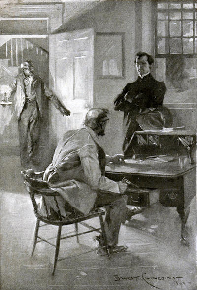 Once, indeed, his mastership appeared. Wash Still, the overseer’s son, who was about Steve’s age, used to bully the smaller boys, and one day when Jacquelin was playing about the blacksmith’s shop, Wash, who was waiting for a horse to be shod, twisted the arm of Doan, one[4] of Jacquelin’s sable team, until the boy whimpered. Jacquelin never knew just how it happened, but a sudden fulness came over him; he seized a hatchet lying by, and made an onslaught on Wash, which came near performing on that youngster the same operation that Wash’s august namesake performed on the celebrated cherry-tree. Jacquelin received a tremendous whipping from his father for his vicious attack; but his defence saved his sable companions from any further imposition than his own, and Wash was shortly sent off by his father to school.
