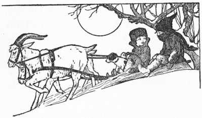 “That comes of knowing how to drive goats,” said Santa Claus. “Johnny knows a lot and I am going to give him a job, because he works so hard,” and with that Tommy’s boots suddenly jumped him into the sled, and Santa Claus stepped in behind him and pulled up a big robe over them.