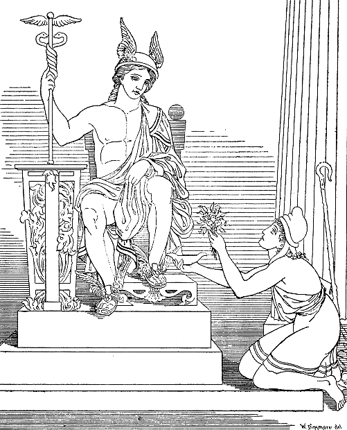 MERCURY BESTOWING ON THE YOUTHFUL ÆSOP THE INVENTION OF THE APOLOGUE. (See page 43.)FABLES AND FABULISTS: