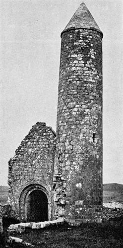 Dublin and its vicinity are not quite so rich in antiquities as some other parts of Ireland. Very few traces of the old Danish city have been left. Its walls can be traced in some few places. But what sort of houses the people lived in can only be guessed at. They were probably, for the most part, built of wood; for it cannot be too often impressed on those who have a taste for antiquarian studies, that in ancient, and even what is generally known as mediæval times, almost the entire populations of northern countries lived in houses of wood or of mud, and sometimes in houses made of both materials. For centuries after the art of building with stone and mortar was well understood, stone houses were rarely used by the masses either in towns or country places. They had stone-built churches and round towers, and sometimes castles, but the people lived in wooden or in mud houses. Dublin has more round towers in its immediate vicinity than any other Irish city. There are three of them within a few miles’ distance. That of Clondalkin is on the Great Southern Railway; that of Lusk is on the Great Northern; and that of Swords is only[Pg 353] seven miles from Dublin by road, and only two miles from Malahide Station on the Great Northern. All these towers are in a good state of preservation; but the one at Swords will soon be a ruin if the ivy, with which it has been foolishly allowed to become completely covered, is not removed from it. Ivy holds up for a time a building that is in a state of decay, but in the long run it is sure to ruin it completely; for when the ivy becomes strong enough, it forces its way between the stones, gradually displaces them, and the building then tumbles down. If it is the Board of Works that has charge of the Swords round tower, they are greatly to blame for allowing the ivy to be gradually but surely bringing it to certain ruin. If it is under the control of a private person, public opinion should compel him to have the ivy removed from what was not long ago one of the most perfect and best preserved of Irish round towers.
