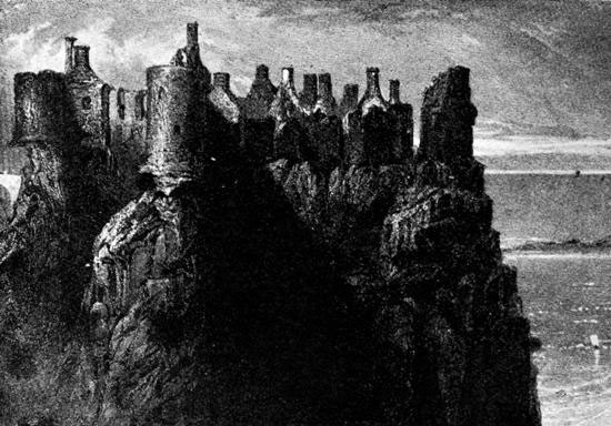 | The most remarkable ruined Castle in Ireland—From its situation it is the finest ruin of the kind in Europe—The narrow causeway by which it is entered—Unusual thinness of its walls—Was evidently erected before cannons were perfected—An awful place in a storm—Giant’s Causeway—Dunseverick Castle—Meaning of the name Dunluce—Not known by whom or when it was founded—Was once owned by the MacQuillins—Sorley Boy—Terrible catastrophe that once happened at Dunluce—Must have been built before the fifteenth century. | |