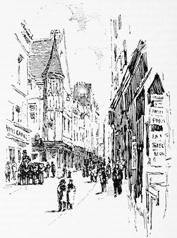 Paris is still the city in Europe where the things of the mind and of taste have most place, where the wheels of life run most smoothly and pleasantly, where the graces and refinements and amenities of social existence, l’art des plaisirs fins, are most highly developed and most widely diffused. There is something in the crisp, luminous air of Paris that quickens the intelligence and stimulates the senses. Even the scent of the wood fires as one emerges from the railway station exhilarates the spirit. The poet Heine used to declare that the traveller could estimate his proximity to Paris by noting the increasing intelligence of the people, and that the very bayonets of the soldiers were more intelligent than those elsewhere. Life, even in its more sensuous and material phases, is less gross and coarse,[4] its pleasures more refined than in London. It is{x} impossible to conceive the pit of a London theatre stirred to fury by a misplaced adjective in a poetical drama, or to imagine anything comparable to the attitude of a Parisian audience at the cheap holiday performances at the Français or the Odéon, where the severe classic tragedies of Racine, of Corneille, of Victor Hugo, or the well-worn comedies of Molière or of Beaumarchais are played with small lure of stage upholstery, and listened to with close attention by a popular audience responsive to the exquisite rhythm and grace of phrasing, the delicate and restrained tragic pathos, and the subtle comedy of their great dramatists. To witness a première at the Français is an intellectual feast. The brilliant house; the pit and stalls filled with black-coated critics; the quick apprehension of the points and happy phrases; the universal and excited discussion between the acts; the atmosphere of keen and alert intelligence pervading the whole assembly; the quaint survival of the time-honoured “overture”—three knocks on the boards—dating back to Roman times when the Prologus of the comedy stepped forth and craved the attention of the audience by three taps of his wand; the chief actor’s approach to the front of the stage after the play is ended to announce to Mesdames and Messieurs what in these days they have known for weeks before from the press, that “the piece we have had the honour of playing” is by such a one—all combine to make an indelible impression on the mind of the foreign spectator.