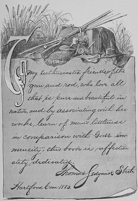 To my enthusiastic friends of the gun and rod, who love all that is pure and beautiful in nature, and by associating with her works, learn of man’s littleness in comparison with God’s immensity, this book is affectionately dedicated.