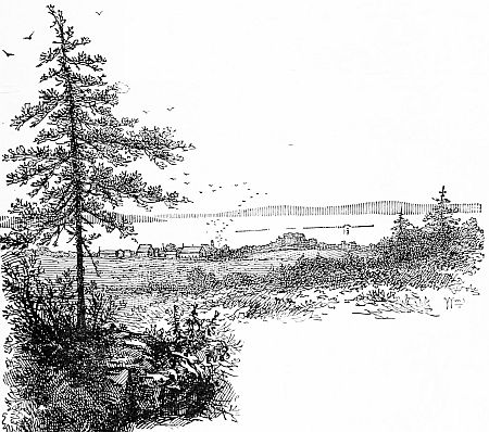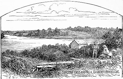 The solitary log house and barn on Hunt’s farm were erected some forty-three years ago, and are located on high ground in a picturesque bend of the Penobscot river.