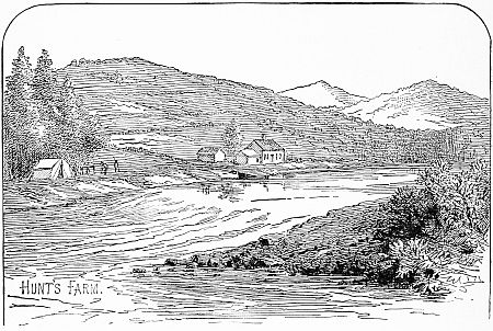 The house outside is painted red, white-washed inside, with low ceilings similar to the others mentioned. In addition to the cultivation of land near the house, an attempt was made some seasons ago to press into tillage, as a melon patch, the side of an adjacent mountain, but the fruit, as soon as it grew heavy and ripened, snapped its hold on the vines, rolled down the mountain side, and was crushed at its base. As can easily be seen, this elevated farm was not a success, and now only the bright green foliage of a fresh growth of trees is left to tell the melancholy story. Mr. Dunn, who, assisted by three other persons, takes care of the place, showed us many attentions, supplying us with fresh milk and sugar, and other delicacies that had been foreign to our fare at camp for many days.