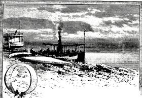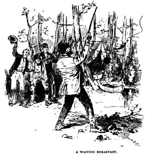 “Hello, stranger!” yelled the Colonel, as rounding a bend in the stream he spied a man standing in one of the log-houses that dot the banks; “can you tell us how far it is to the next town?”