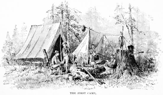 | The start.—Unwarranted assumptions.—Our guides and outfit.—A flimsy wharf.—Railroading of the old days.—Contemptible deceit toward dumb animals.—Commencement of fun on the “Carries.”—We go into camp.—First night in the wilds, | Page 15 |
