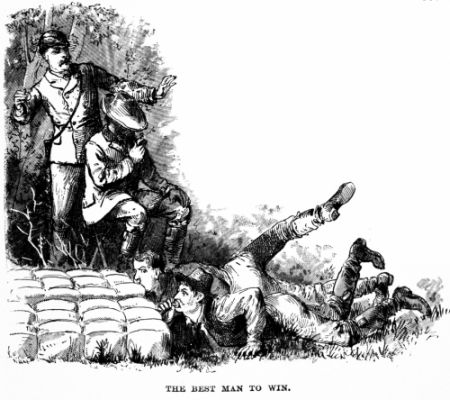 “Oh, no; not much. I raise sons to do it. I’ve got eleven as likely boys as you ever did see; but I lost one in the war—poor feller!” as in a husky tone of voice he pointed to a framed certificate of his son’s war services.