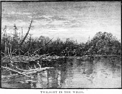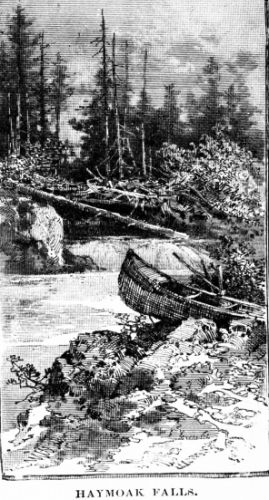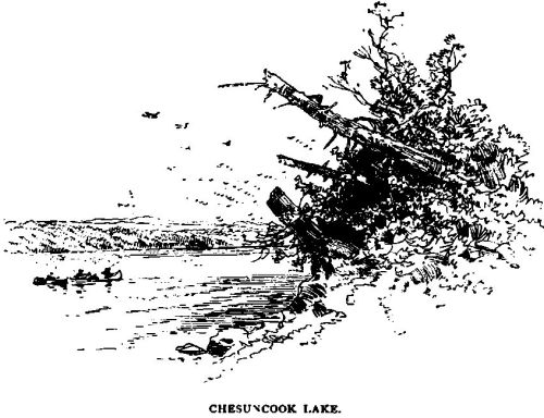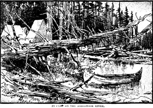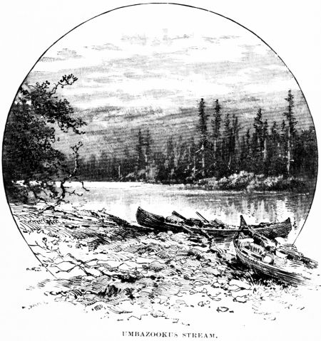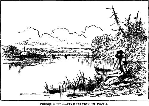 The sun was creeping down the western sky, and the tall pines on the bluffs above us threw their lengthening shadows across the stream, as doubling the last bend we shot the canoes along side the wharf at Caribou, and completed our tour of over four hundred miles from Moosehead Lake to the Aroostook River.