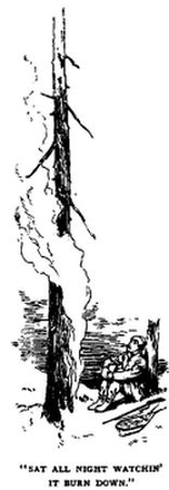 “Must a-had a dry time, gen’lmen,” he said, as he busied himself attending to us. “Didn’t find much water, I guess. Never did see the ’Roostook run down so low in all my life, an’ I’ve lived on this ’ere river now nigh on thirty-seven year. I’m[138] seventy odd year old, but only for a lame hip I’ve got I could tramp through the woods with the best o’ ye.”