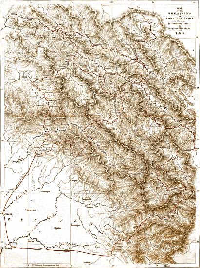MAP of the MOUNTAINS OF NORTHERN INDIA. to illustrate Dr. Thomson's Travels in Western Himalaya and Tibet.