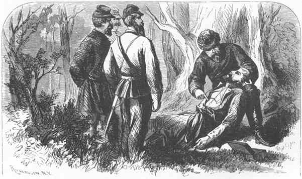 Every war-correspondent has his story of experiences in the field. Gathering the details of a battle in the midst of its dangers; sharing the privations of the camp and the fatigues of the march; riding with scouts, and visiting the skirmishers on the extreme front; journeying to the rear through regions infested by the enemy's cavalry, or running the gauntlet of Rebel batteries, his life was far from monotonous. Frequently the correspondents acted as volunteer aids to generals during engagements, and rendered important service. They often took the muskets of fallen soldiers and used them to advantage. On the water, as on land, they sustained their reputation, and proved that the hand which wielded the pen was able to wield the sword. They contributed their proportion of killed, wounded, and captured to the casualties of the war. Some of them accepted commissions in the army and navy.