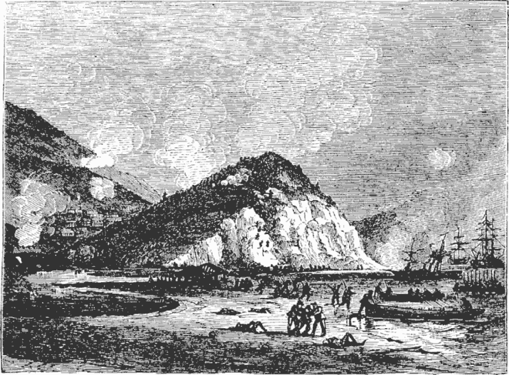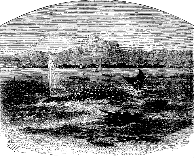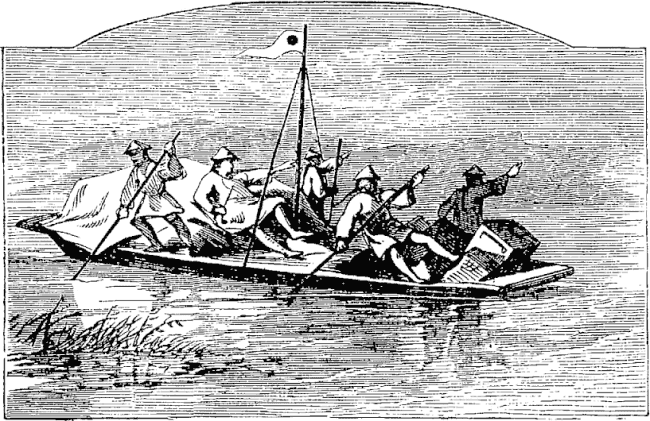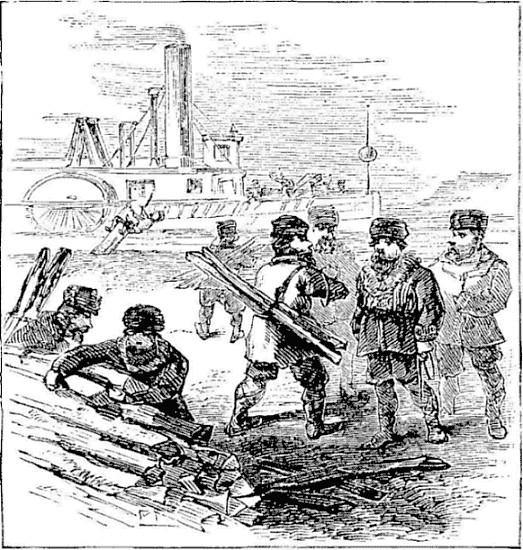 Passing this suburb we reached the winter station of many steamboats and barges, among which we threaded our way. Seven versts from Kazan we reached the bank of the Volga.