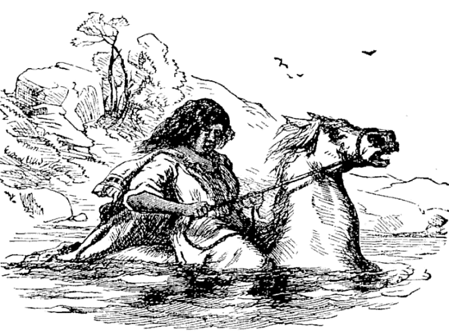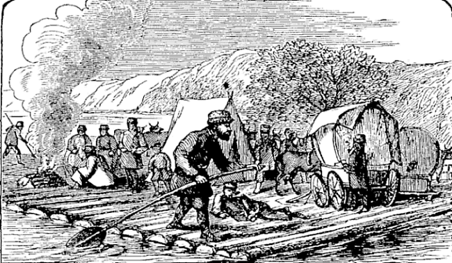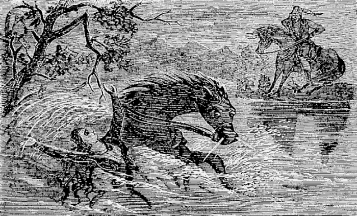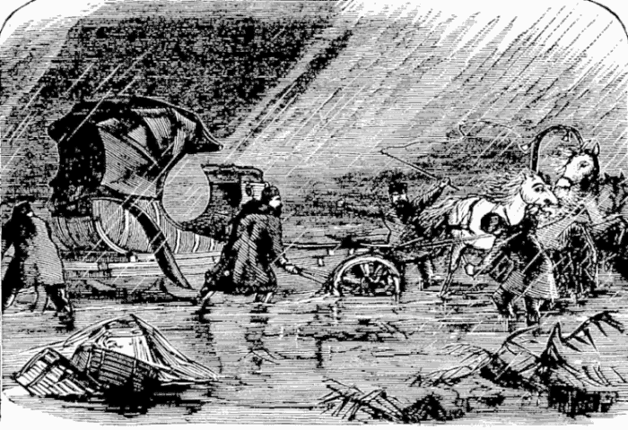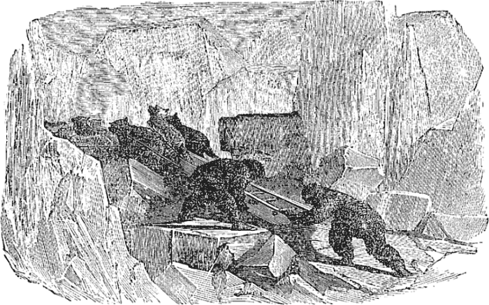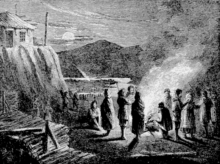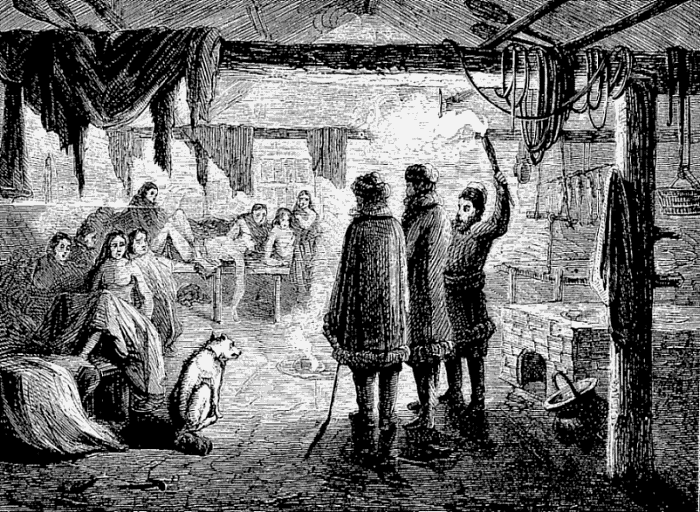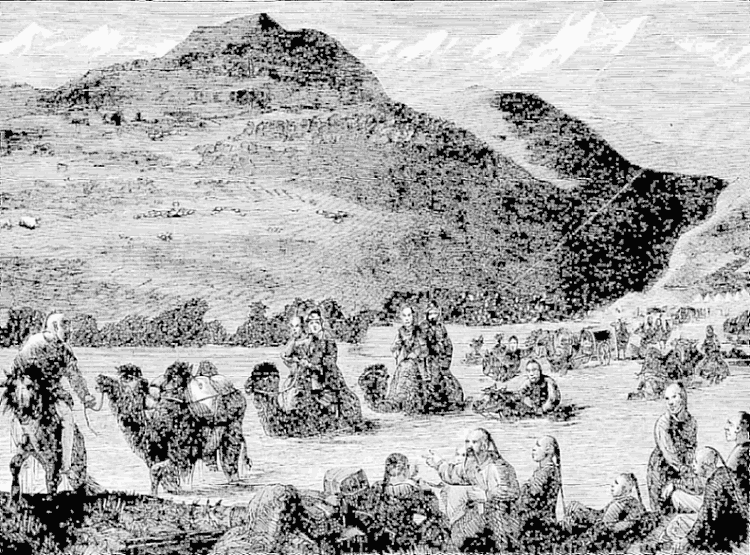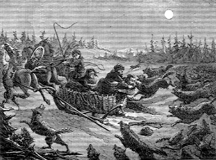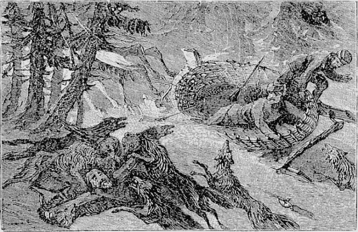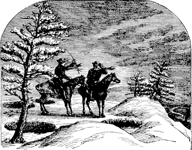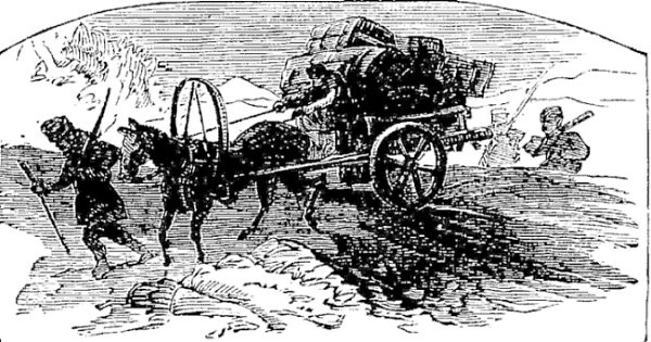 Night came upon us soon after passing the first station. The road was a combination of pitch-holes, water, soft snow, and detours to avoid dangerous places. The most unpleasant drives were when we left the river to change horses at the villages on the high bank. It was well enough going up, but in descending the sleigh sometimes endeavored to go ahead of the horses. Once we came near going over a perpendicular bank sixty or eighty feet high. Had we done so, our establishment would have not been worth fifty cents a bushel at the bottom of the bank.