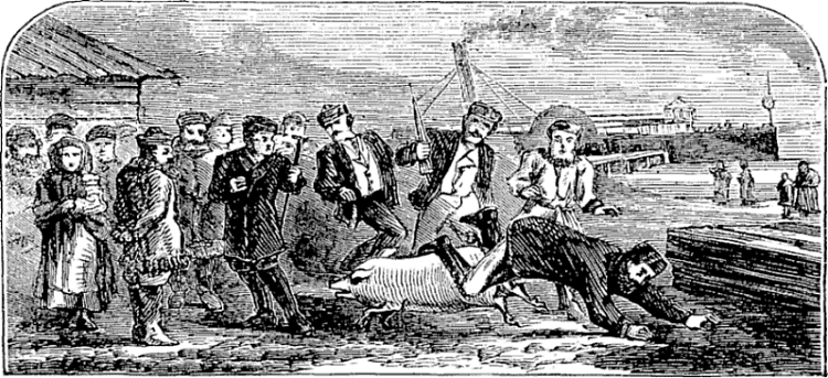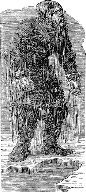 The first view of the road upon the river was not inviting. There were many pools of surface water, and the continuous travel had worn deep hollows in the snow and ice. Some of the pools into which our yemshick drove appeared about as safe as a mill-pond in May. As the fellow ought to know his route I said nothing, and let him have his own way. We met a great many sleds carrying merchandise, and passed a train going in our direction. One driver carelessly riding on his load was rolled overboard, and fell sidewise into a deep mass of snow and water. He uttered an imprecation, and rose dripping like a boiled cabbage just lifted out of a dinner pot.